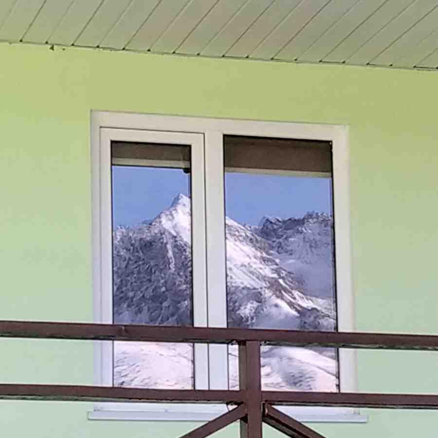 Первое, что я увидел, посмотрев с утра в окно, отражение белоснежных гор в окне здания напротив, что не могло не поднять настроение, а сытный завтрак лишь удвоил радость от пробуждения.