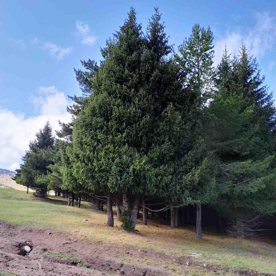 На склоне, что остался позади и нависал над селом, были плотно усажены ели, видимо для того, чтобы не случился оползень. Интересно, что усажены они были настолько кучно, что под их темной хвоей совсем не было видно света, под этим небольшим «лесом» царила кромешная тьма. Отличное место для съемки фильма ужасов!