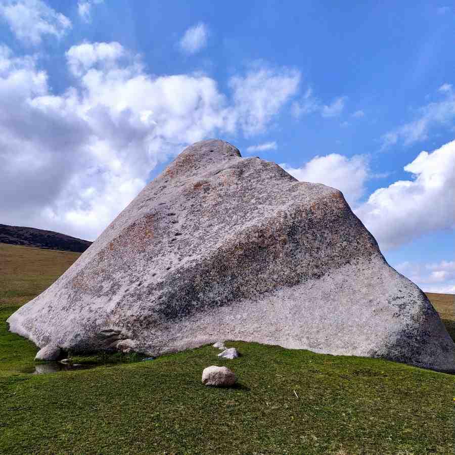 Варун вернулся к нам, когда мы уже почти дошли до главной точки нашего маршрута – огромного камня посреди поля под названием Тулпар-Таш, высотой около 8-10 метров! Особенно выделялись «следы копыт», ведущие от подножия до самого верха. По легенде, их оставил конь Ак-Кул киргизского богатыря Манас батыра, героя национального эпоса. С тех пор камень обрел название Тулпар-Таш или «скакун-камень». Местные говорят о том, что для исполнения желания нужно пройти определенное количество кругов вокруг него. Звучит, конечно, интересно, но мне ближе куда более практичный подход – самостоятельно двигаться к заветной цели.