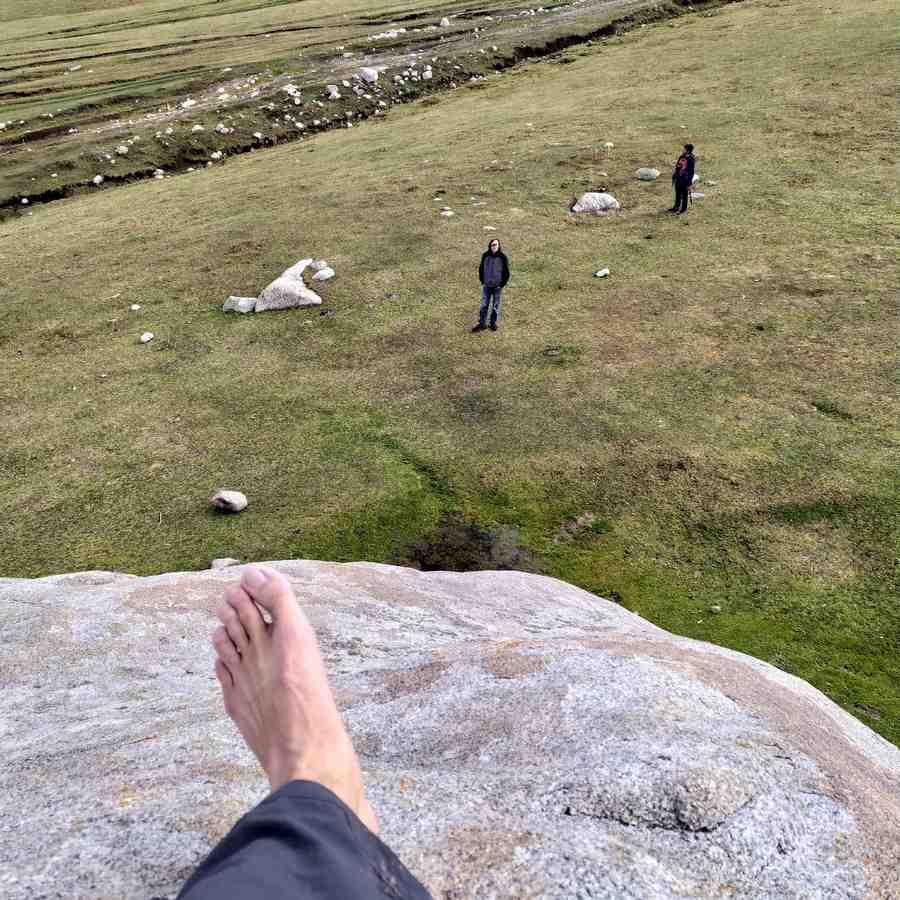 Чем больше я ходил вокруг (не с целью исполнить желание, разумеется), тем больше убеждался в том, что можно подняться на самый верх. Почва у подножия мягкая, травянистая, если соскользну – вряд ли убьюсь. Тогда я решил проверить свою теорию. Сняв ботинки и носки для лучшего сцепления, я попробовал повторить то же, что делал много раз на Красноярских Столбах, дома, где лазанье по огромным камням-скалам является целым хобби для тысяч жителей.