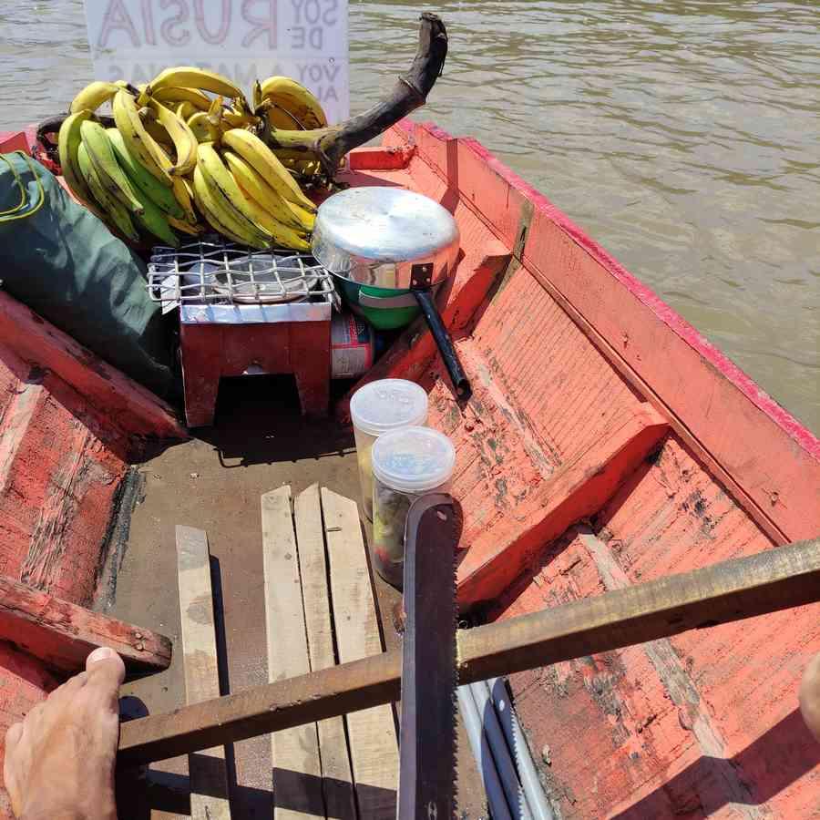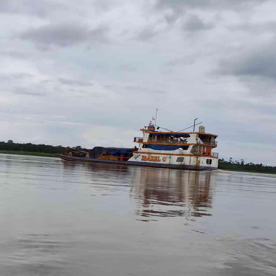 Стоило мне отойти от берега, как мимо прошла огромная баржа под названием «Pacifico» (исп. Тихий). Её нос сильно задран, так что она спокойно пройдёт поверх любых брёвен или неудачливых любителей погрести на каноэ.