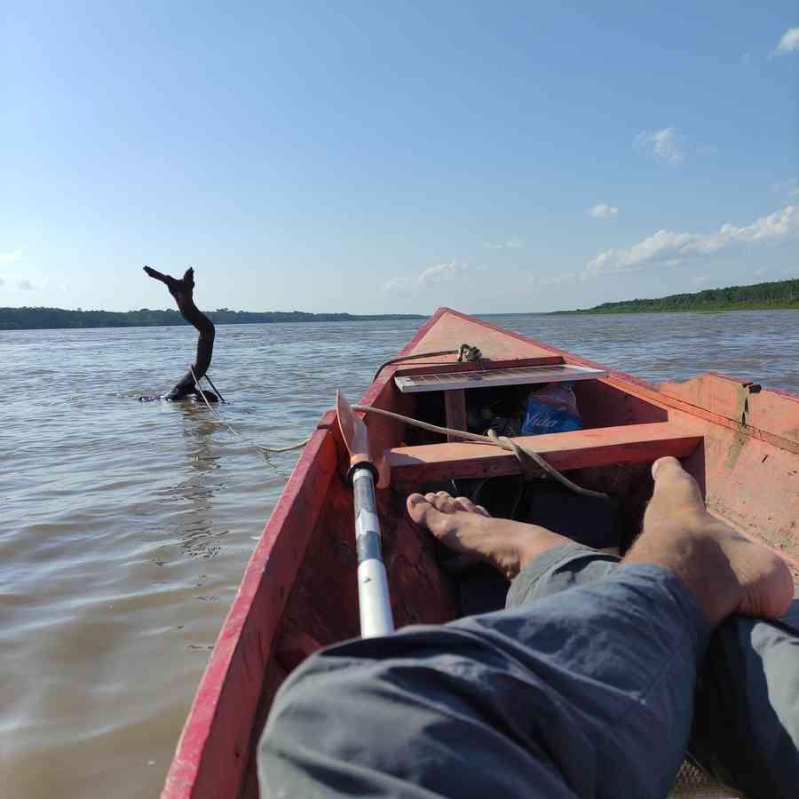 Спалось в гамаке значительно комфортнее. С утра решил вновь попытать удачу с рыбалкой, поставил донную снасть и пошёл собирать вещи. Когда вернулся, большого куска берега, где я ещё не так давно ходил, не стало. Его поглотила река. Рухнул, когда проходило очередное судно, ударила волна. Да уж, опасности подстерегают на каждом шагу. Снасти уцелели! До них Амазонка добраться не смогла, не успела. Ничего не поймал и отправился в путь.