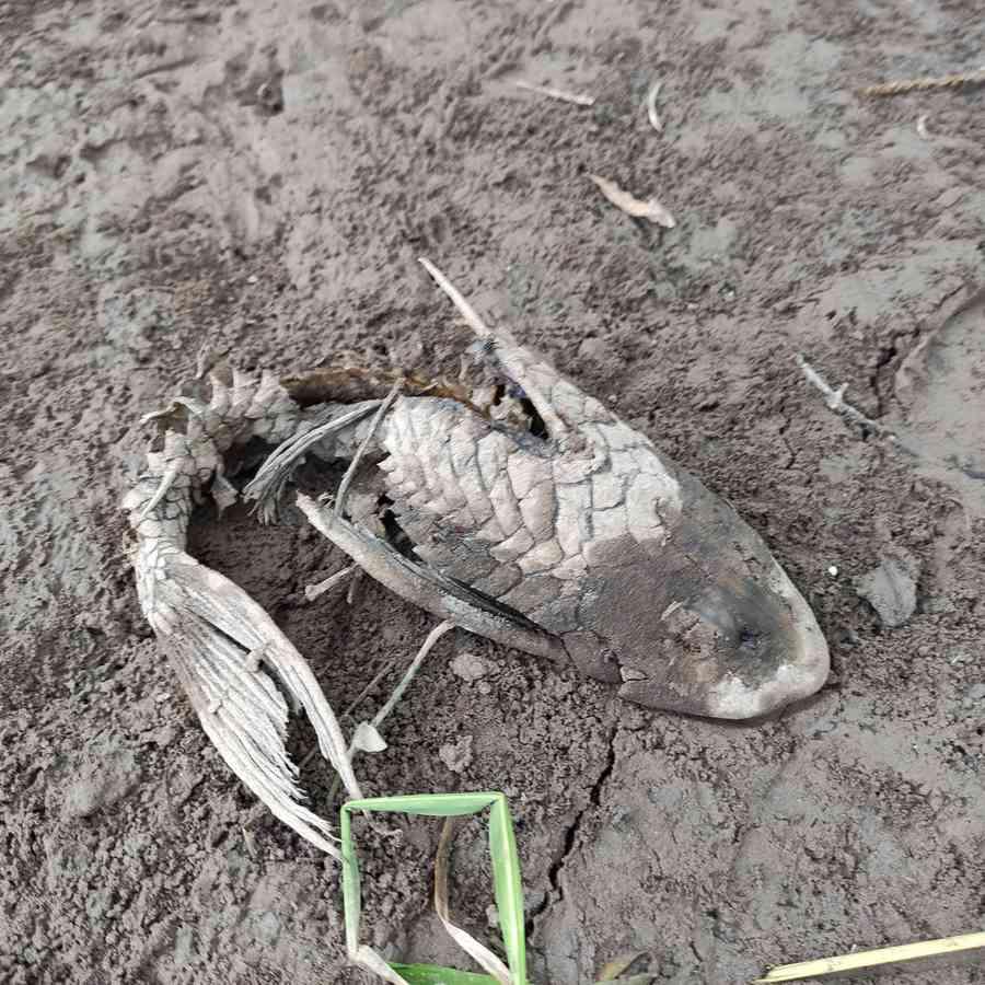 Наученный последней ночью, я выбрал более безопасное место засветло. От волн в этот раз меня должно прикрыть бревно, да и лодка почти до середины стоит на земле, в русле пересохшей речушки. Правда, я не знаю, что будет, если начнётся ливень, если этот ручеек вновь утолит свою жажду. Погулял по окрестностям в поисках чего-нибудь интересного. Далеко уйти не смог – слишком топко. Нашёл труп небольшого сома в чёрном панцире. Не крокодил, но для начала сойдёт. Всегда мечтал увидеть крокодила в природной среде обитания.