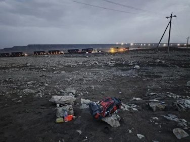 Уже затемно Мункх свернул в сторону шахты, а я остался на трассе у забегаловок. Не упустил возможность купить ещё 3 литра воды. Может от моего вида я не знаю, но мне явно скинули цену (на прилавке другая).