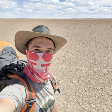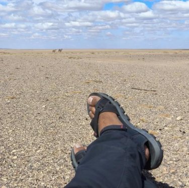 Километры тянутся бесконечно. Уже слегка подташнивает (не буквально) от вида камней. К тому же почти исчез ветер, что сильно спасал. Без ветра становится очень жарко. Если бы не шляпа, уже схватил бы солнечный удар. Ещё 40 км.