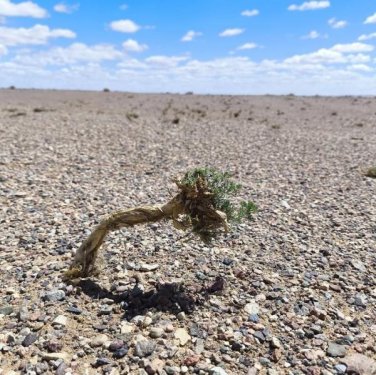 Показалось. До Мандаха ещё километров 50, идти по песку с камнями тяжело, но природа не перестает удивлять. Здесь совсем не видно деревьев, но они есть, просто находятся в микромире, где живут ящерицы, жуки и прочие создания.
