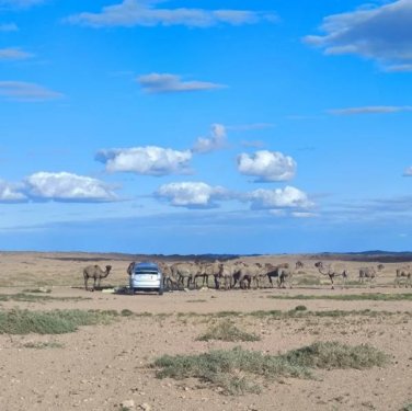 Заметил семью, что приехала на Приусе и, кажется, поит своих верблюдов. А те радостно бегут с другого края пастбища встречать хозяев. Подходить не стал, чтобы не пугать. Животных, разумеется.