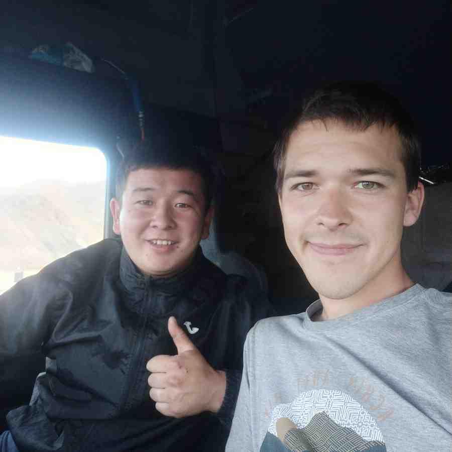Когда я уж было думал пройти эти несчастные 3-4 часа пешком, уставившись в карту и подсчитывая расстояние, я услышал резкий гудок, громкий, объемный. Ошарашенно подняв голову, я увидел фуру, что замедлила передо мной ход и парень за рулем жестом спрашивал «Тебе туда?!». В ответ я кивнул и он припарковался чуть впереди, хотя места для такой махины здесь совсем не было. Так я познакомился с веселым парнем по имени Баяман.