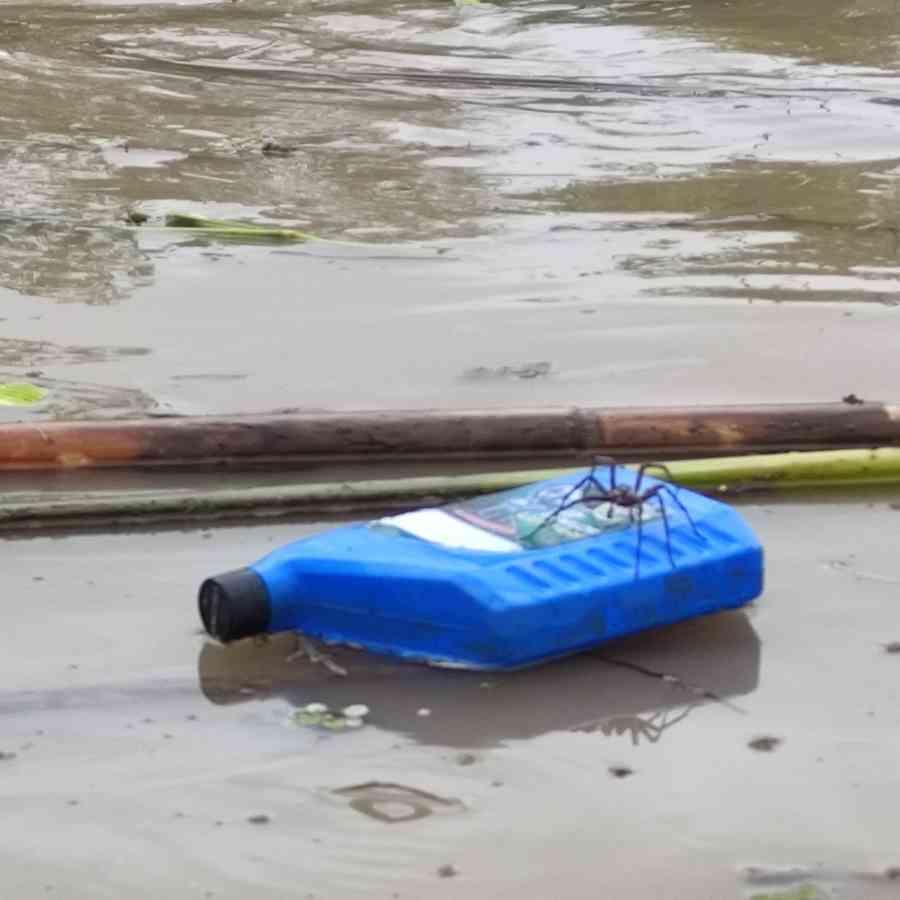 У меня тут прямо-таки киношный сценарий. Был такой фильм «Жизнь Пи», где мальчик с тигром на лодке в море оказался. Так вот. У меня не тигр, конечно, а огромный паук, что спасся во время паводков на бревне, при первой же возможности перелез ко мне. Выглядит пугающе.
