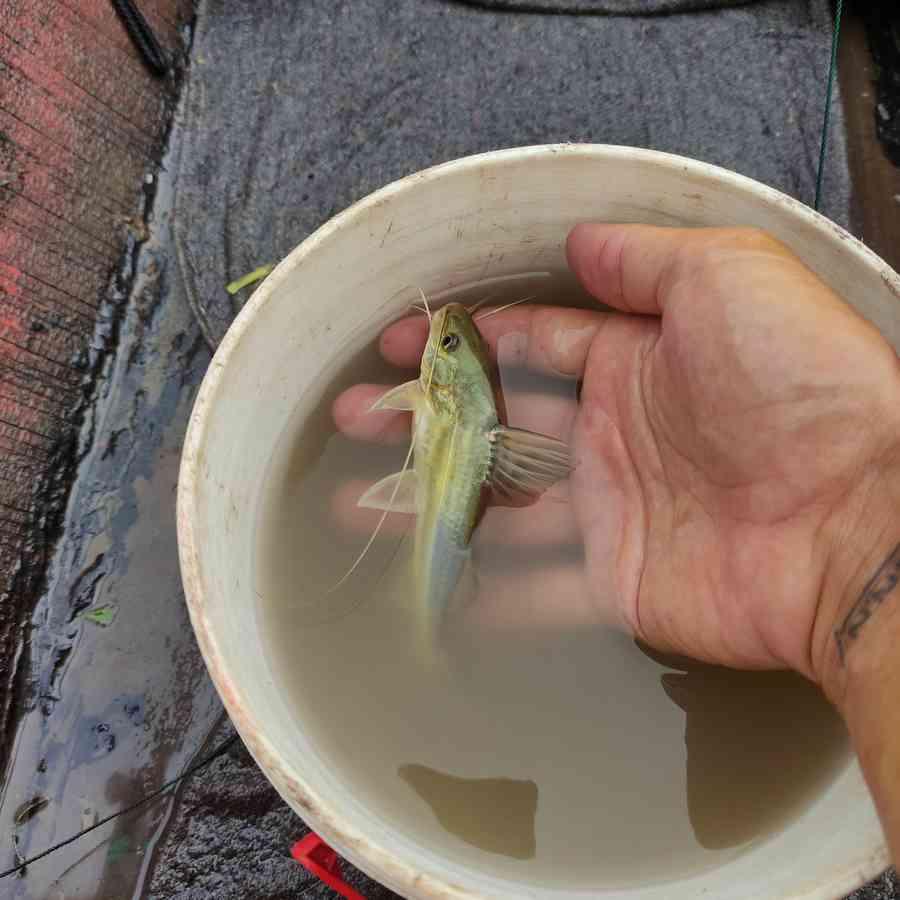 Соорудил для ловли наживки гибкую удочку из тростника. Не прошло и 5 минут, как в одном из прибрежных кустарников поймал сомика. Ягода работает! Как я понял, в такой мутной воде важно при забросе как можно громче ударить приманкой о поверхность. Тогда рыба придёт на звук упавшей наживки, если она рядом. В один из забросов на мою лёгкую снасть клюнуло что-то столь крупное, что я даже не смог это вытащить.