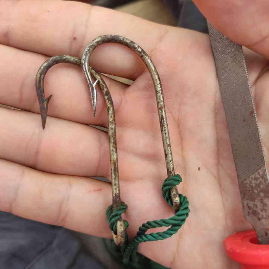 Вывел лодку в основное течение реки и спрятался под тент. Пришло время для следующего этапа подготовки: взял огромные крючки по 4-5 см, наточил 2 штуки до блеска, чтобы соорудить ночью ловушку. Может, сегодня поймаю своего Моби Дика?!