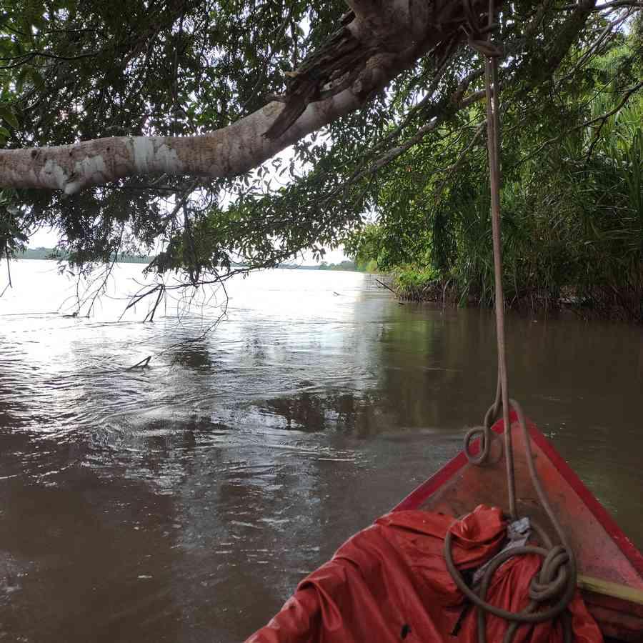На берегу меня встретило несколько местных, которые с большим интересом отнеслись к конструкции моей лодки. Когда мне удалось отыскать москитную сетку и вернуться обратно, у моего дома уже собралась целая толпа. Не меньше 15 человек с любопытством изучали мой инопланетный корабль. Я объяснил, зачем нужны брёвна по бокам, на что мне сказали, что местные не ходят в основном русле по реке. На каноэ это слишком опасно, а ещё многие не умеют плавать. Вот это да!