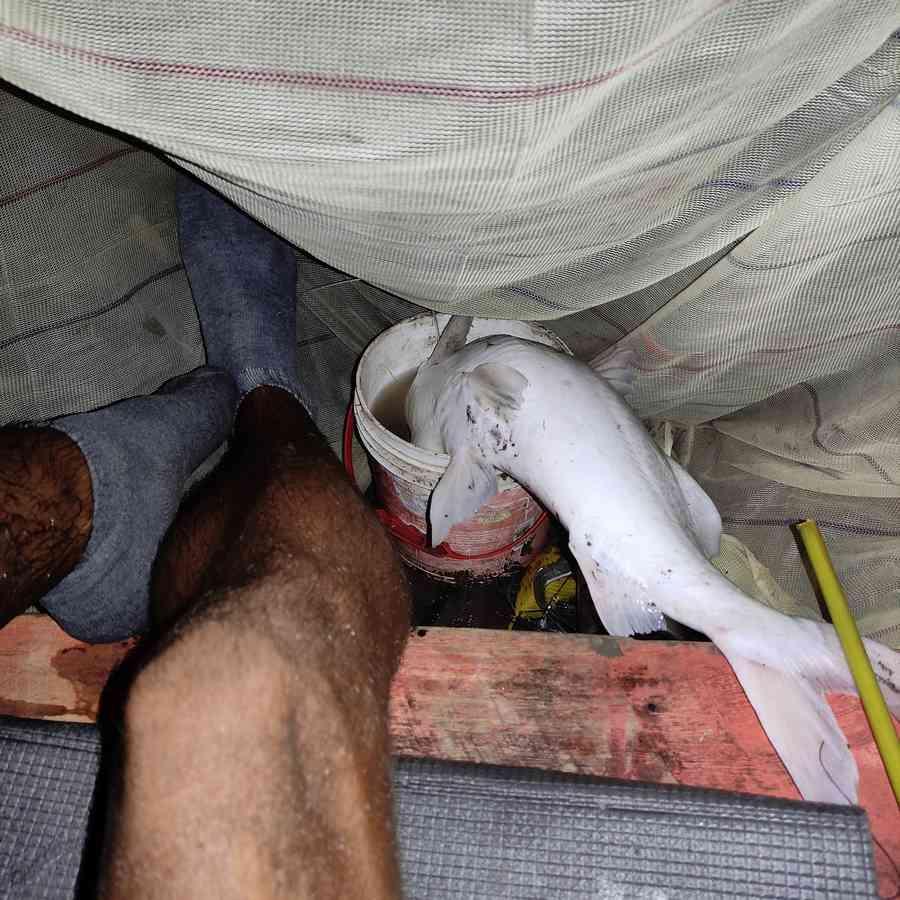 Похоже, что это одна из самых больших рыб в моей жизни. У меня в руках оказался сом весом в 3-4 килограмма (или больше). Достойный трофей! Все мои злоключения стоили того, чтобы поймать этого красавца. Хотелось спать, так что привязал его к лодке, предварительно погрузив в сумку, чтобы меня никто не опередил. Его съем я! Этим займусь уже завтра, а пока намажу ноги маслом в очередной раз, а потом лягу спать.
