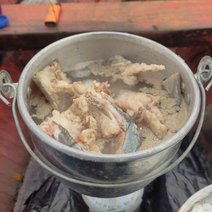 Всё оказалось проще, чем я думал. Не прошло и 30 минут, как дело было сделано. Мачете упростило задачу. Не представляю, как бы я иначе пробил панцирь этого здоровяка, ведь там настоящая броня на спине. Получилась целая кастрюля мяса! Её я решил засолить до худших времён. Скелет же с кусочками рыбьего мяса и жирными плавниками решил отварить прямо сейчас, сделав наваристый суп. Похоже, сегодня я буду по-настоящему праздновать середину пути до Икитоса!