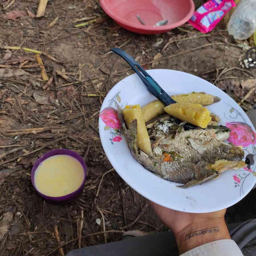Пообедал в последний раз с семьей Хонаса. Вкуснейшая свежая рыба и бананы – такая простая, но роскошная пища. Вкус ощущается очень остро. Кто знает, когда я вновь поем что-то столь вкусное. Собрал свои вещи, снарядил лодку. Жена Хонаса дала мне в дорогу горячего плова с курицей и солёной рыбы, в числе которой, кстати, и мой сом.