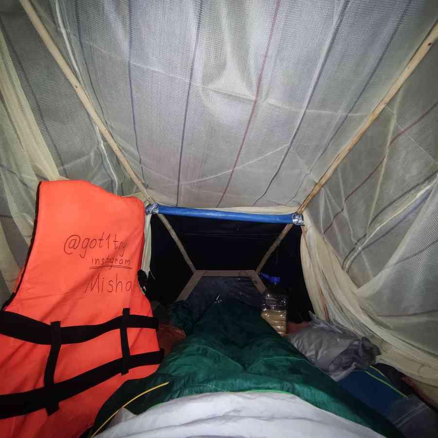 Рыбалка не оправдала себя, в отличие от изменений в конструкции лодки. Места становится всё больше, особенно порадовала москитная сетка. Пожалуй, это одно из лучших моих приобретений. Осталось добавить пару новых стоек, чтобы ещё чуть увеличить внутреннее пространство. Теперь спирали отлично справляются с насекомыми. Я ставлю одну такую в ноги, и дым душит всё живое, постепенно поднимаясь вверх по тенту, минуя меня. Можно спокойно наслаждаться сном.