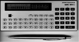 «Электроника МК-85 – советский программируемый калькулятор (микрокомпьютер) на базе 16-битного процессора со встроенным интерпретатором языка Бейсик. Разрабатывался в НИИТТ, главный конструктор – Л. Минкин, заместитель ГК – Ю. Отрохов, разработчики – С. Ермаков, О. Семичастнов, Б. Кротков, А. Подоров, В. Гладков и др. Выпускался заводом «Ангстрем», г. Зеленоград с 1986 года по 2000 год, было произведено более 150 тыс. калькуляторов различных модификаций… МК-85 продавался в сети магазинов «Электроника» по цене 145 рублей, что на тот момент было значительно дешевле любой другой ЭВМ, оснащённой интерпретатором Бейсика…Предположительно, единственный в мире на момент появления микрокалькулятор, оснащённый 16-разрядным микропроцессором с системой команд PDP-11»