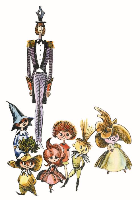 Неожиданно из-за деревьев появилось много таких человечков. Они быстро бежали, перебирая короткими ножками, и выстраивались в ряд. Саше и Алёше показалось, что где-то они уже видели эти удивительные фигурки. Но не успели они сказать об этом друг другу, как человечки построились между двумя линейками, нарисованными на земле, и застыли, как солдаты на параде.