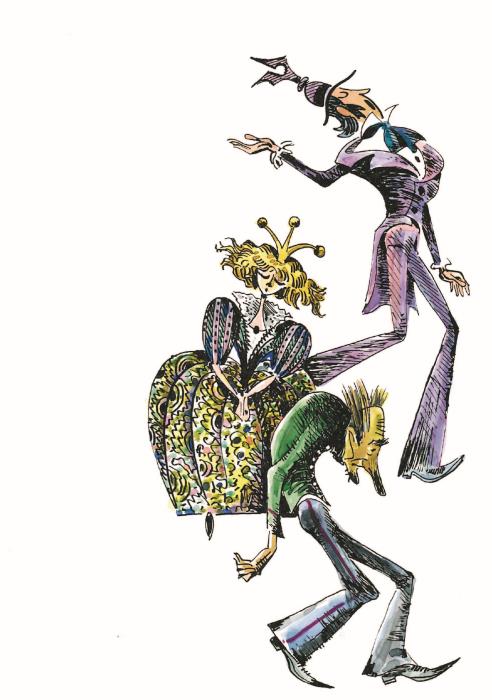 Улицы Буквограда не имели тротуаров, а дорожки для пешеходов отделялись от мостовой узкими газонами, на которых росли яркие полевые цветы. На перекрёстках стояли Восклицательные Знаки. Они регулировали движение и сле-дили за порядком. Восклицательный Знак поднимал руку в белой перчатке, и все машины и все пешеходы сразу останавливались. А если кто-нибудь нарушал правила, Восклицательный Знак сейчас же подзывал его и отводил на Скамью Несознательных.