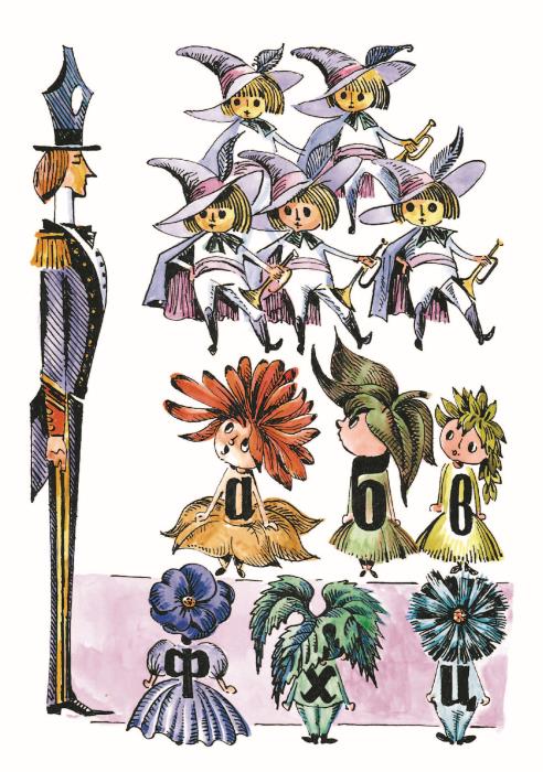 – Итак, начнём учиться, – приветливо сказала буква А. – Но, простите, пожалуйста, ведь мы ещё не познакомились. Меня зовут Астра. Правда, красиво? А это моя подруга. Её зовут Бегония. А это Веточка…