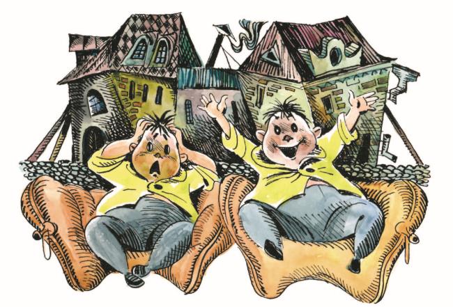 Действительно, было над чем посмеяться. Ах и Ох достали из карманов резиновые мешки и принялись что есть силы надувать их. Через минуту мешки превратились в большие резиновые кресла, в которые Ах и Ох тут же уселись и продолжили ахать и охать. Кажется, они и в самом деле решили расположиться надолго.