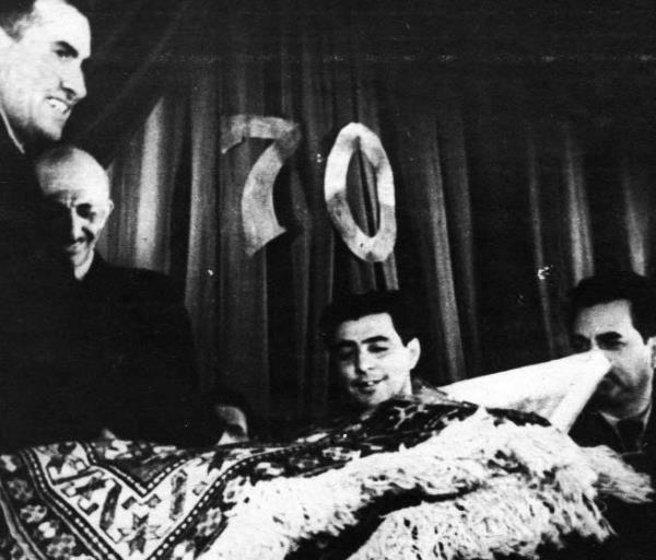 Назим Гаджиев с Самедом Вургуном, Ниязи, Махмудом Мамедовым, Мам едали Фаталиевым. Кисловодск, 1953 год