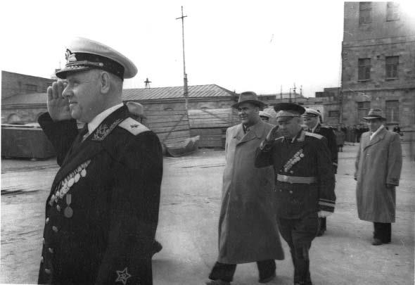 Назим Гаджиев и Садых Рагимов в гостях у командования Каспийской флотилии, 1958 год