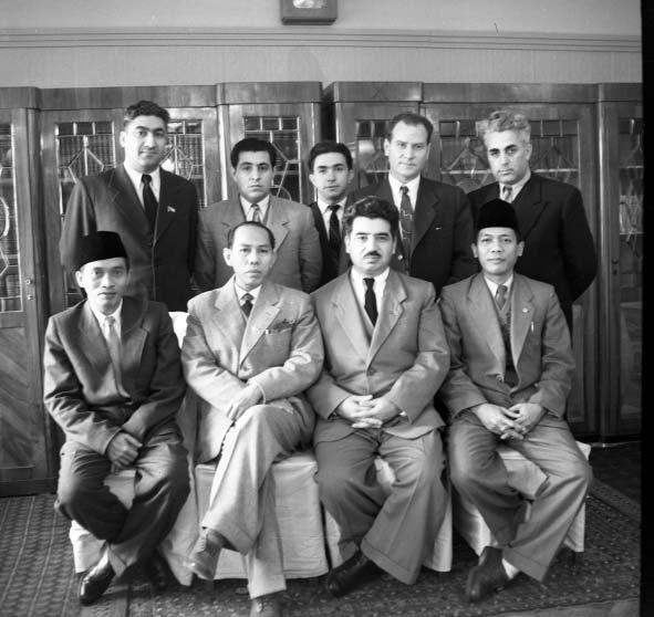 Назим Гаджиев во время приёма делегация Компартии Индонезии Имамом Мустафаевым, 1958 год