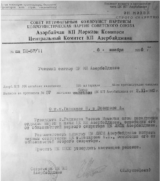 Затем последовало соответствующее решение бюро ЦК КП Азербайджана: