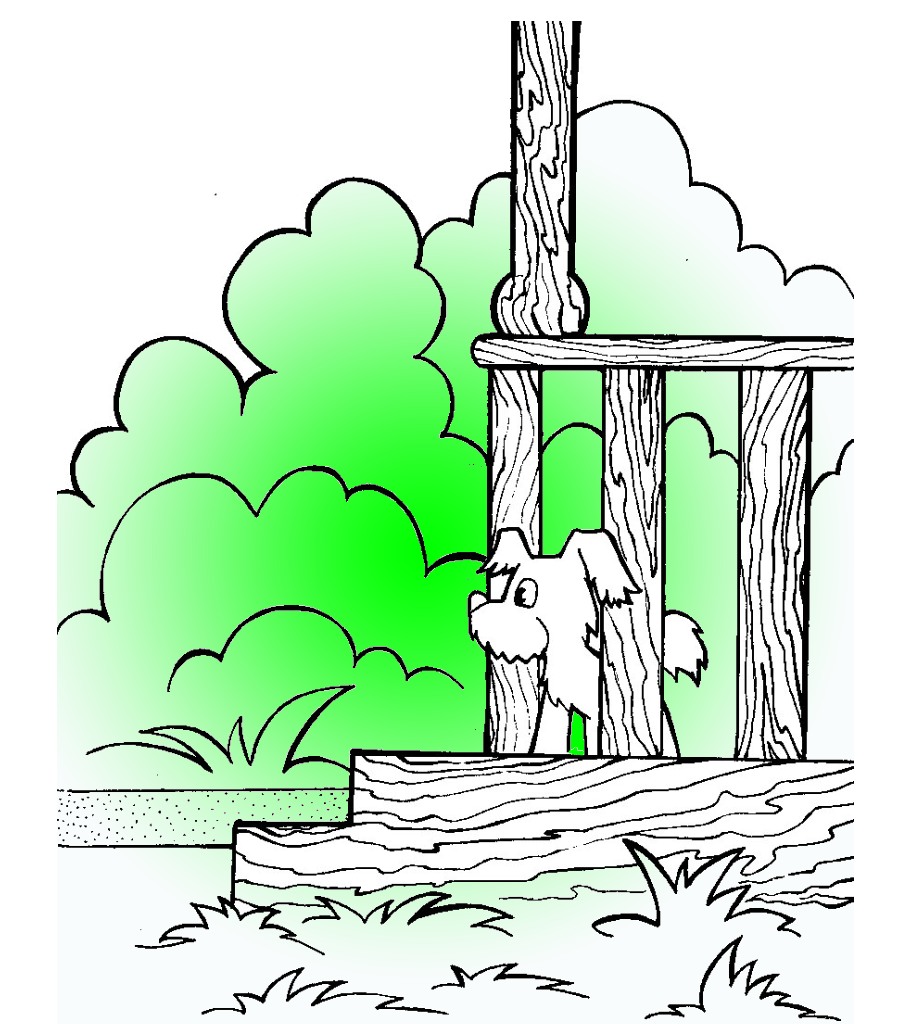 Приглядевшись, мальчишка заметил на крыльце, выглядывавшую из-за деревянных перил, собачью мордочку.