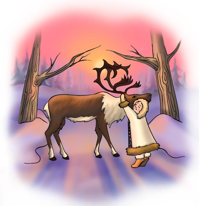 Он перестал замечать, что его бабушка дедушка уже старенькие и нуждаются в уважении, любви, заботе не менее чем он сам. Но увы, как-то дедушка предложил внуку показать работу оленеводов, познакомить с олененком, который появился на свет совсем недавно и был назван его именем. Внук без особого желания последовал за дедом, но ему быстро все надоело. Собак он велел запрячь в упряжку, и загонял их бестолковой ездой, гоняясь за песцом. Олени разбежались в разные стороны, а дедушка в очередной раз был обеспокоен поведением внука, ему было очень стыдно перед оленеводами. Бабушка тоже переживала о перемене в поведении своего любимого внука, разрывалась между ним и мужем. Они очень ждали его приезда, продолжали бесконечно любить, но внук был неоправданно глух и слеп к мольбам стариков. Он оставался равнодушным даже тогда, когда дедушка заболел и слег. Этого перенести старик не смог и решил уйти из чума в тундру навсегда. Рано утром он вышел из чума и зашагал, куда повели его уставшие ноги и больное сердце. Он и не заметил, что за ним последовал его верный старый пес, а еще ворон, которому было уже больше ста лет, который был очень мудрым и наблюдательным. За стариком он наблюдал давно и мысленно его жалел, ведь он помнил его еще молодым, жизнерадостным, любящим жизнь. Подул холодный, пронизывающий насквозь северный ветер, но путники продолжали двигаться все дальше и дальше. Ворон догадался о планах старика и решил ему помочь. Он заговорил с ним и старик поведал ему о своем горе, о том, что он не хочет возвращаться в чум, что он завидует оленям, их спокойному образу жизни, им чужда такая порой нелегкая человеческая жизнь. «Так ты хочешь стать оленем?» – спросил его ворон. «Да, очень хочу» – ответил старик. Ворон расчувствовался так сильно, что решил удовлетворить его просьбу, превратив его в оленя.