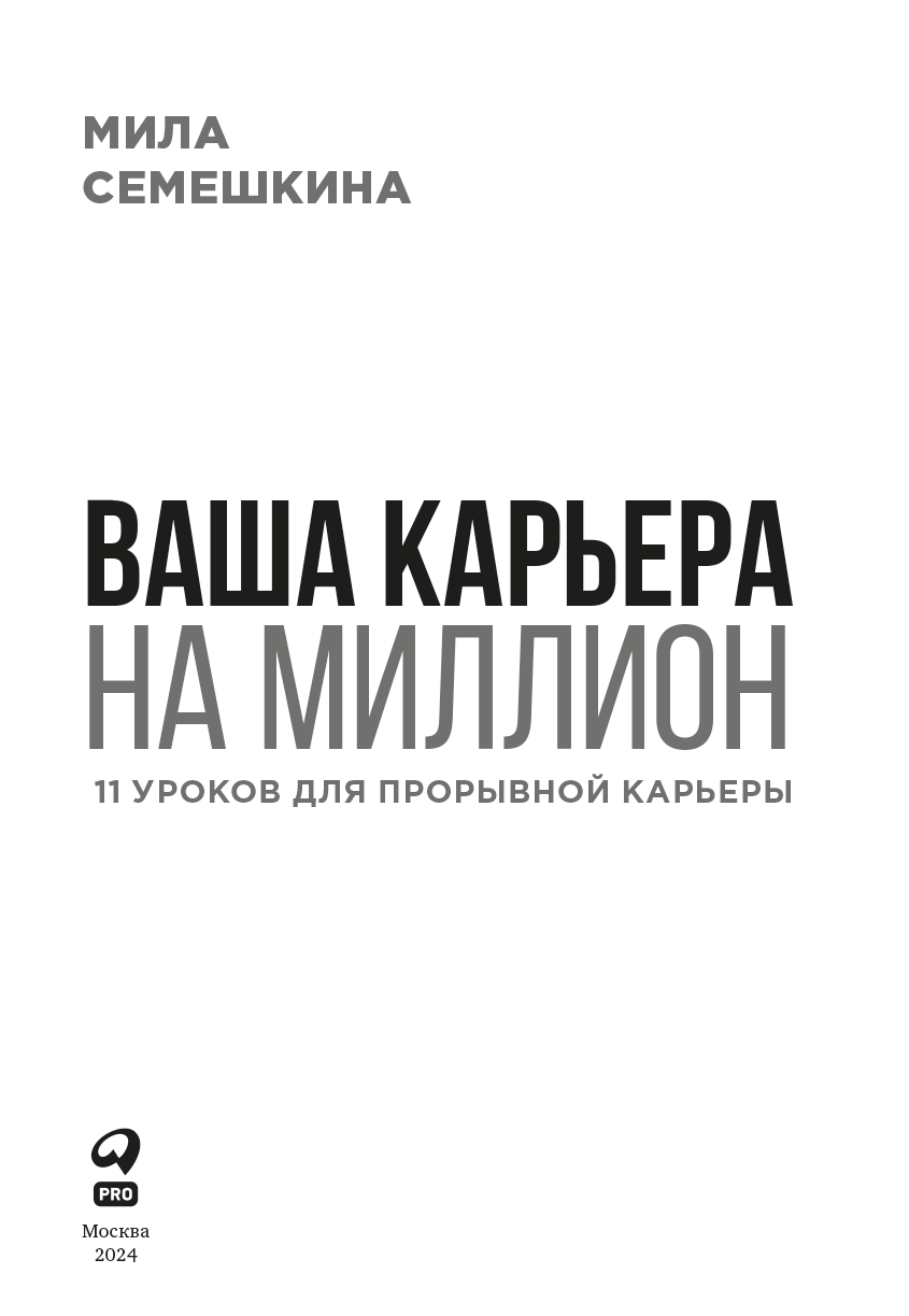 Ровно потому, что у меня есть навык и понимание того, как правильно выстраивать карьеру, я помогаю с этим всем участникам команды и тысячам людей по всему миру. Моя аудитория – миллионы людей из более чем 60 стран. Всем своим накопленным опытом и инструментарием я хочу поделиться со всеми, кто откроет эту книгу. Она для тех, кто хочет построить мощную карьеру и по возможности избежать негативного и очень жесткого опыта. Я понимаю, как можно сократить путь от точки ноль до той позиции, о которой мечталось. Я знаю, как построить ту самую карьеру на миллион – и под миллионом я понимаю, естественно, миллион долларов. И я горжусь тем, что на сегодняшний день вырастила уже не один десяток миллионеров – мои ребята получают уже действительно серьезные деньги. И все это благодаря тому, что у нас есть очень понятный и очень четкий алгоритм роста, нам известны все шаги, которые человек должен сделать, чтобы стать успешным.