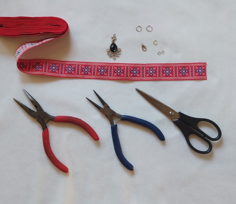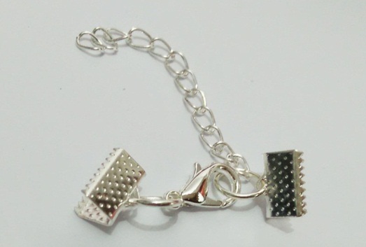 К крепежам цепляешь соединительные кольца: к одному застёжку, а к другому цепочку. Сами крепежи необходимо обжать пассатижами с каждой из сторон тесьмы.
