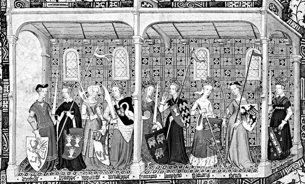 Дамы-рыцари. Из манускрипта «Странствующий рыцарь», 1400 год