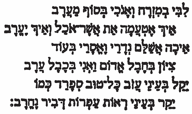 В Царьград он прибыл так, как путешествует всегда, – на высоком верблюде, которого кормят рыбой. Животное под ним идет иноходью, и ни капли вина не проливается из чаши, укрепленной в оголовье. С раннего детства Бранкович спит не ночью, как все зрячие, а только днем, но когда он перевел свои часы и превратил день в ночь – сказать никто не может. Однако и во время своих ночных бдений он не может спокойно сидеть на месте, будто не дает ему покоя чужое горе. Поэтому за трапезой ему всегда ставят две тарелки, два стула и два стакана – среди обеда он часто неожиданно вскакивает и пересаживается на другое место. Точно так же не может он долго говорить на одном языке, а меняет их, как любовниц, и переходит то на румынский, то на венгерский или турецкий, а у одного попугая начал учить и хазарский язык. Известно, что во сне он говорит по-испански, но наяву это его знание тает, как снег на солнце. Не так давно кто-то пел ему во сне песню на непонятном языке. Песню он запомнил, и для того, чтобы перевести ее, нам пришлось искать человека, знающего языки, не известные Бранковичу. Так мы нашли одного раввина, и Бранкович прочитал ему на память слова песни. Она короткая и звучит так: