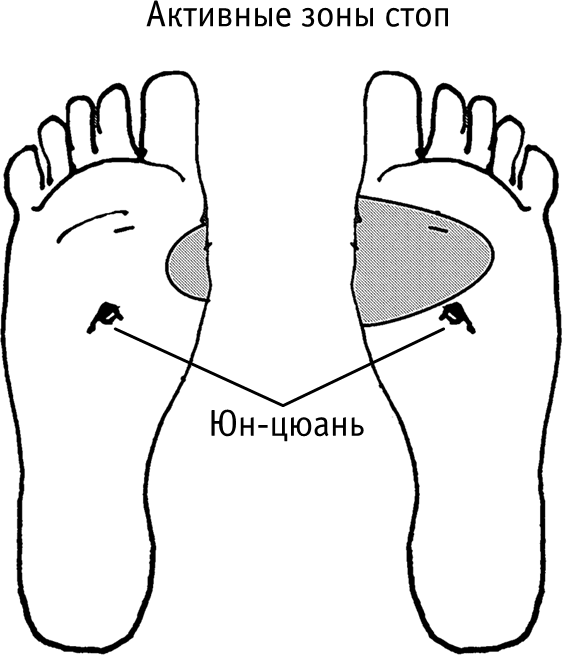Свободной рукой придерживаем стопу, а рабочей рукой выполняем обработку активных зон. Приемы обработки описаны конкретно для каждой активной зоны.
