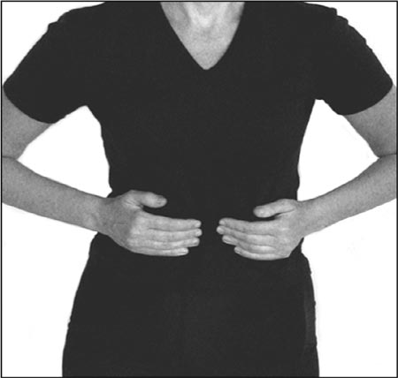Фото 2. Надавливание на надчревную область