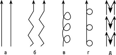 • зигзагообразные (б);