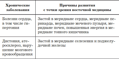 С помощью небольшой таблицы вы можете оценить причины возникновения различных болезней с точки зрения восточной медицины.