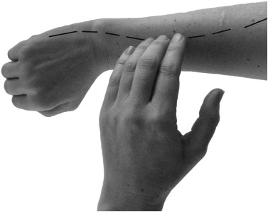 Воздействовать на меридиан можно посредством точечного надавливания, нанесения ударов подушечками пальцев по всему ходу меридиана (фото 3, г) или внутренней поверхностью нескольких пальцев. Такая техника удобна при работе с ножными и ручными меридианами, см. фото 3, д. В отдельных случаях применяются удары открытой ладонью и кулаком, например, при быстром простукивании меридианов печени и желчного пузыря. Такие техники обычно используются в Японии, мы обговорим их непосредственно перед началом работы.
