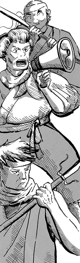– Разделяемся, встречаемся на станции бурадена, – быстро произнес Мансаку, когда Тодомэгава двинулся к ним, дыша дымом и полыхая языками пламени прямо из глаз.