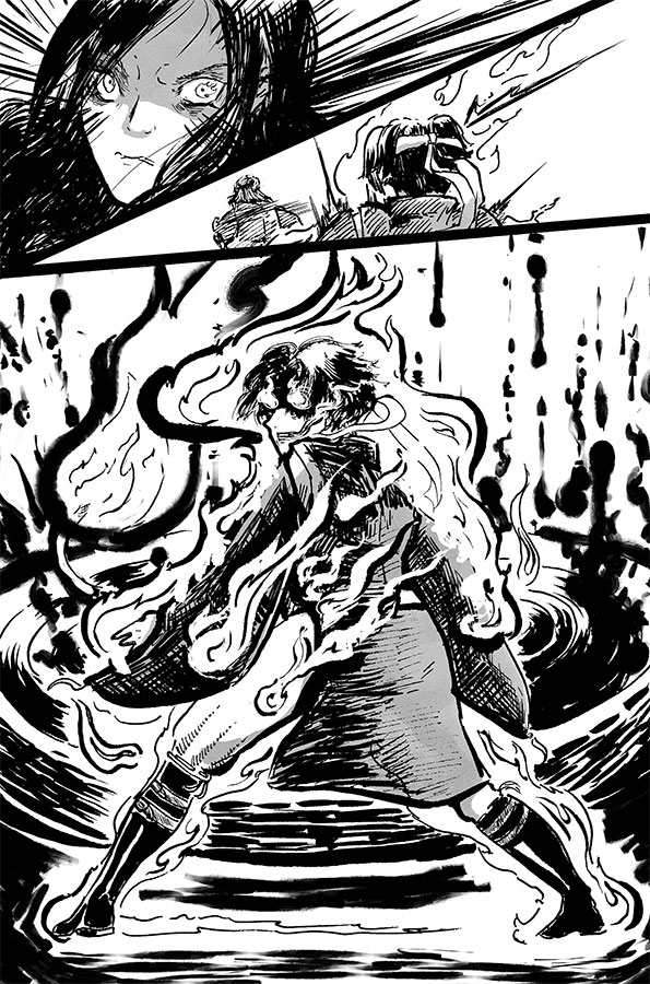 Без лошади Тодомэгава бежал медленно и неуклюже. И все же он бежал. Окутавшее его пламя с каждым нервным шагом становилось все яростнее.
