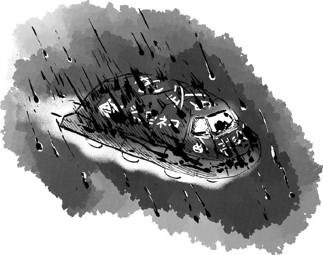 На землю обрушился дождь, горячий и зловонный. Что-то склизкое потекло по лицу Хайо и поползло за шиворот. Она завопила и захлопнула дверь.