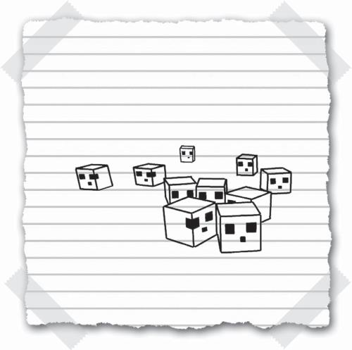 Я его стукнул!БАМ! БАМ! БАМ! Похоже, это сработало. Он перестал ко мне лезть. Но вдруг появился клуб дыма и случилась абсолютно безумная штука, – он распался на три Куба Слизи поменьше. Я их тоже стукнул. БАМ! БАМ! БАМ! И Пуфф! Каждый из них распался на еще более маленькие кубики.