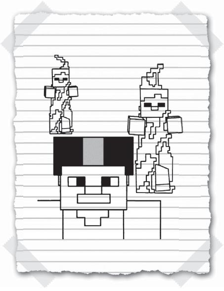 БАМС! ОХ! Стрела попала в меня и оттолкнула от забора, который я бил. О нет! Все трещины исчезли! В этот момент я понял, что мой план не сработает. Черепоголовые превратят меня в человека – подушечку-для-иголок прежде, чем я смогу прорубить забор насквозь.
