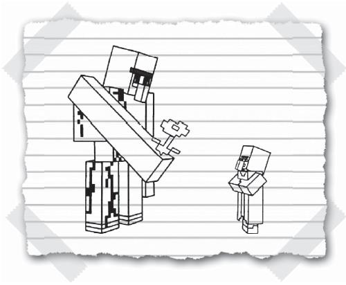 Я почти вернулся в библиотеку, когда увидел… не знаю, что это было. Оно было высокое, как странник Края, но широкоплечее и накачанное, как огромный культурист на стероидах! И на вид оно было металлическим. Но особенно у существа выделялось (кроме огромных мускулистых рук) страшное лицо с красными глазами! Что бы это ни было, оно не выглядело довольным!