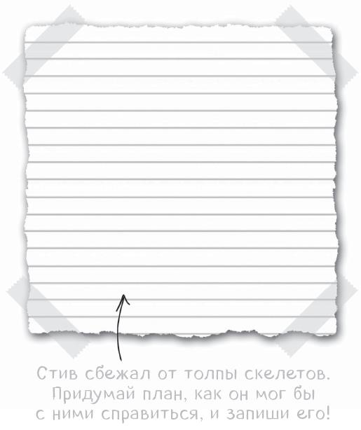 Мне надо было придумать план, и поскорее! Я знал, что скоро уже начнёт темнеть. К тому же я ужасно устал от постоянной беготни. (И от того, что в меня стреляли и плевались!) Но надо было двигаться, чтобы нас не изрешетили стрелами. А в такой ситуации очень сложно сконцентрироваться! Я не мог оставить лам одних. А если я атакую скелетов, то ламы последуют за мной!