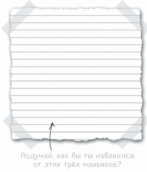 Моё воображение включилось на полную мощность и стало рисовать СОВСЕМ не радужные картины! Я представлял, как псих в полосатых штанах подбегает ко мне сзади или выскакивает на меня из тени (НЕНАВИЖУ, когда так происходит!). Мне казалось, что их много и они ждут меня в КАЖДОЙ комнате! Мысль о том, что на меня снова бросятся с топором, была невыносимой! Мне надо было что-то сделать и НЕМЕДЛЕННО! Поэтому я плюнул на свой план «Перегораживать-коридор-маленькими-кусками» и бросился бегом по коридору, расставляя преграды перед КАЖДОЙ дверью и ответвлением!