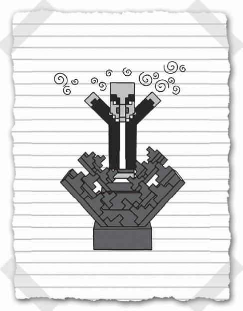 В дальнем конце коридора я увидел то, от чего у меня кровь застыла в жилах: ЕЩЁ ОДИН мистер Безумные-полосатые-штаны! (Да СКОЛЬКО же их тут?) К счастью, он меня не видел, и я не дал ему шанса повернуться в мою сторону! Я выхватил лук и выпустил в него одну за другой кучу стрел! Я не останавливался, пока он не упал и не исчез в облаке белого дыма. Я не собирался давать этим маньякам с топорами ни единого шанса меня разрубить!