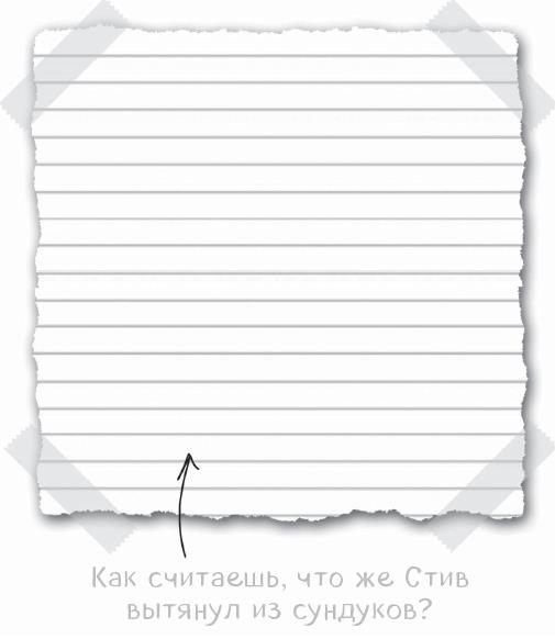 Он снова подбежал к цветам, посмотрел на меня и гавкнул на средний цветок. Потом он подбежал к рычагам, посмотрел на меня и гавкнул на средний рычаг. Когда Гудини сделал это в третий раз, меня озарило. Он пытался мне что-то сказать! Надо дернуть средний рычаг! После того как я это сделал, часть стены сдвинулась, открыв потайную комнату, полную сундуков! Бинго!